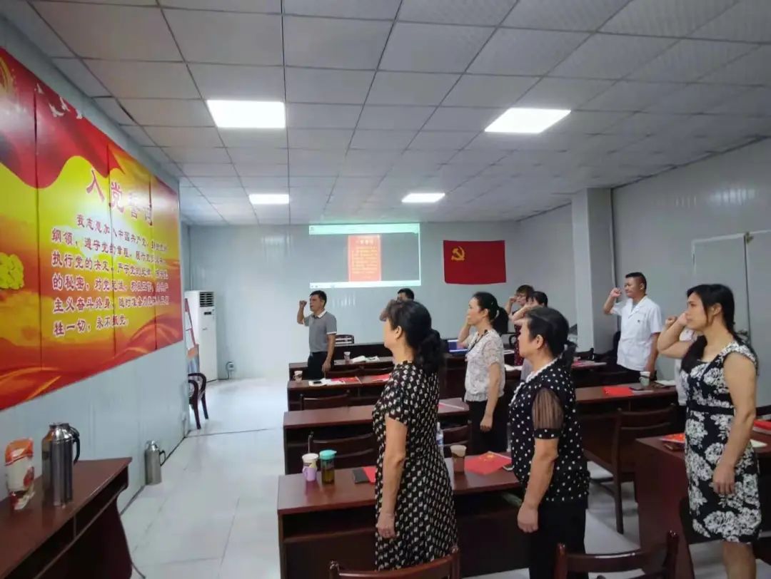 学习会上,大家挥舞国旗,唱响《没有共产党就没有新中国》,江泰忠书记领誓,全体党员重温入党誓词,以多种形式增强集体学习的效果。会后,大家撰写学习心得体会,进一步加深理解和认识。