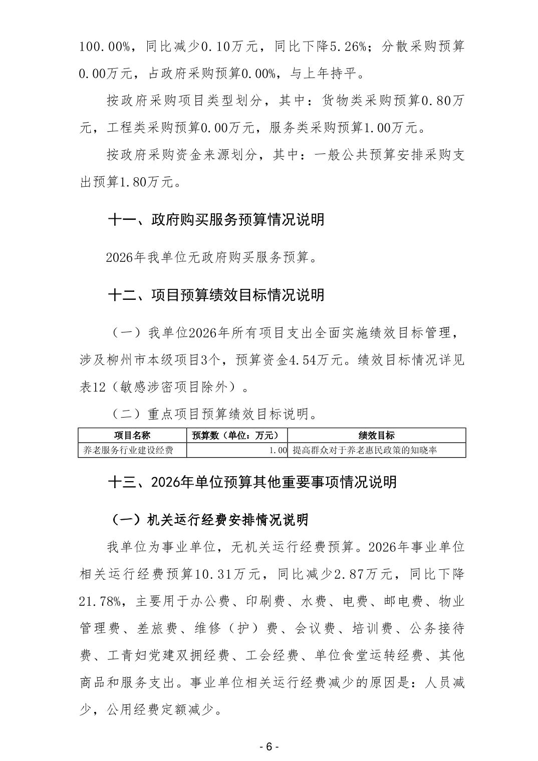 202002柳州市养老服务促进中心2026年单位预算公开说明