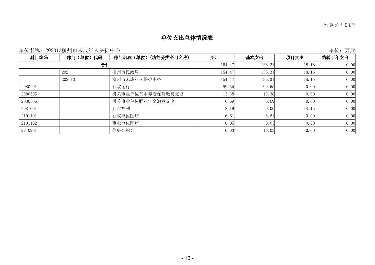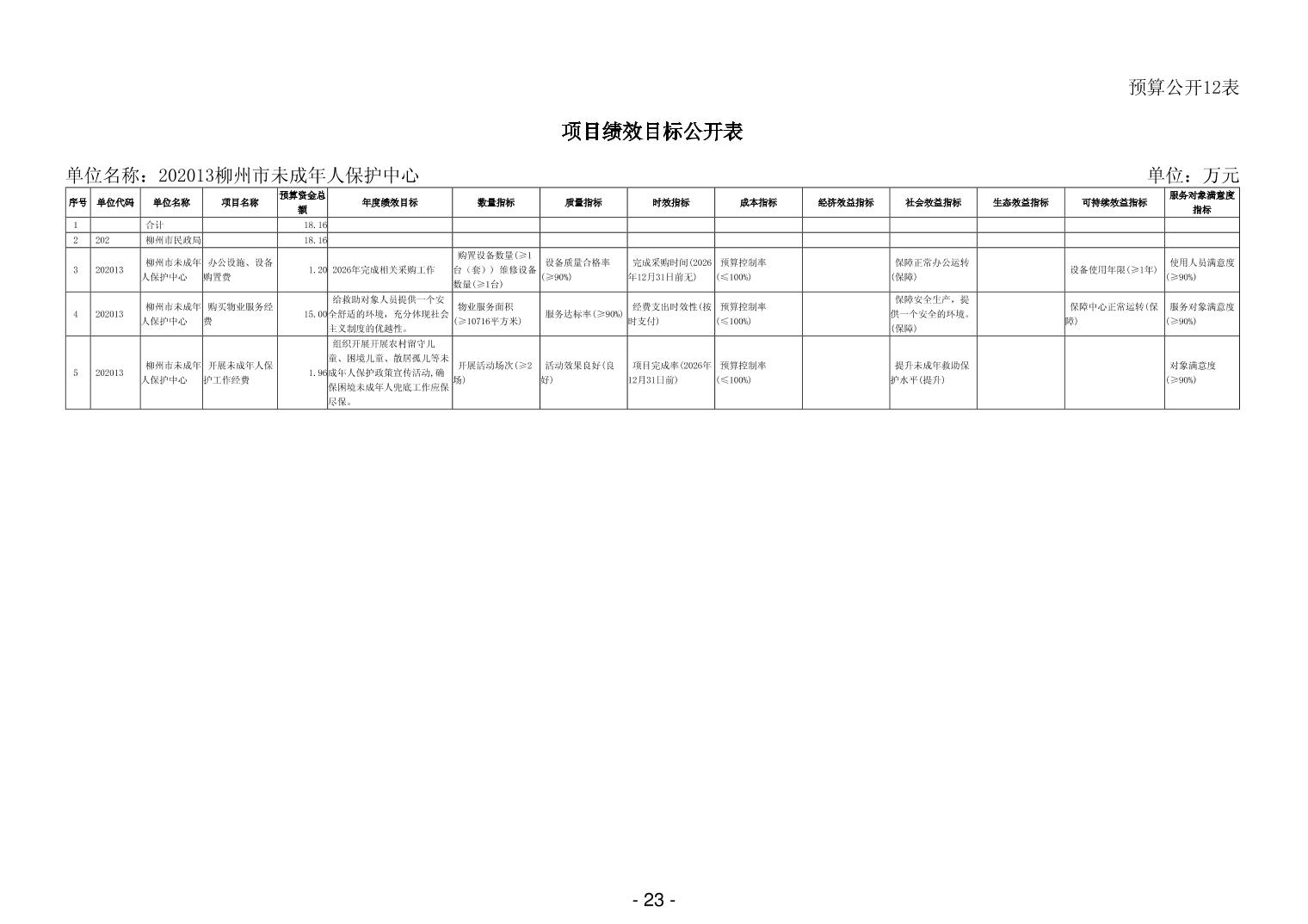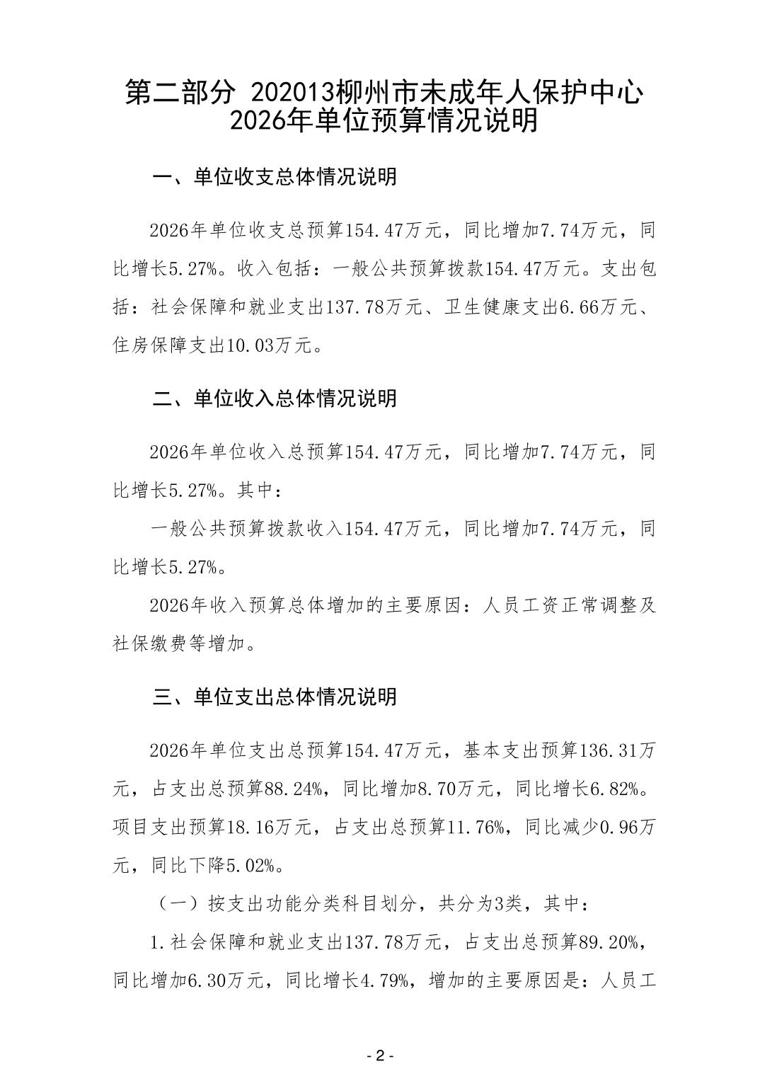 202013柳州市未成年人保护中心2026年单位预算公开说明