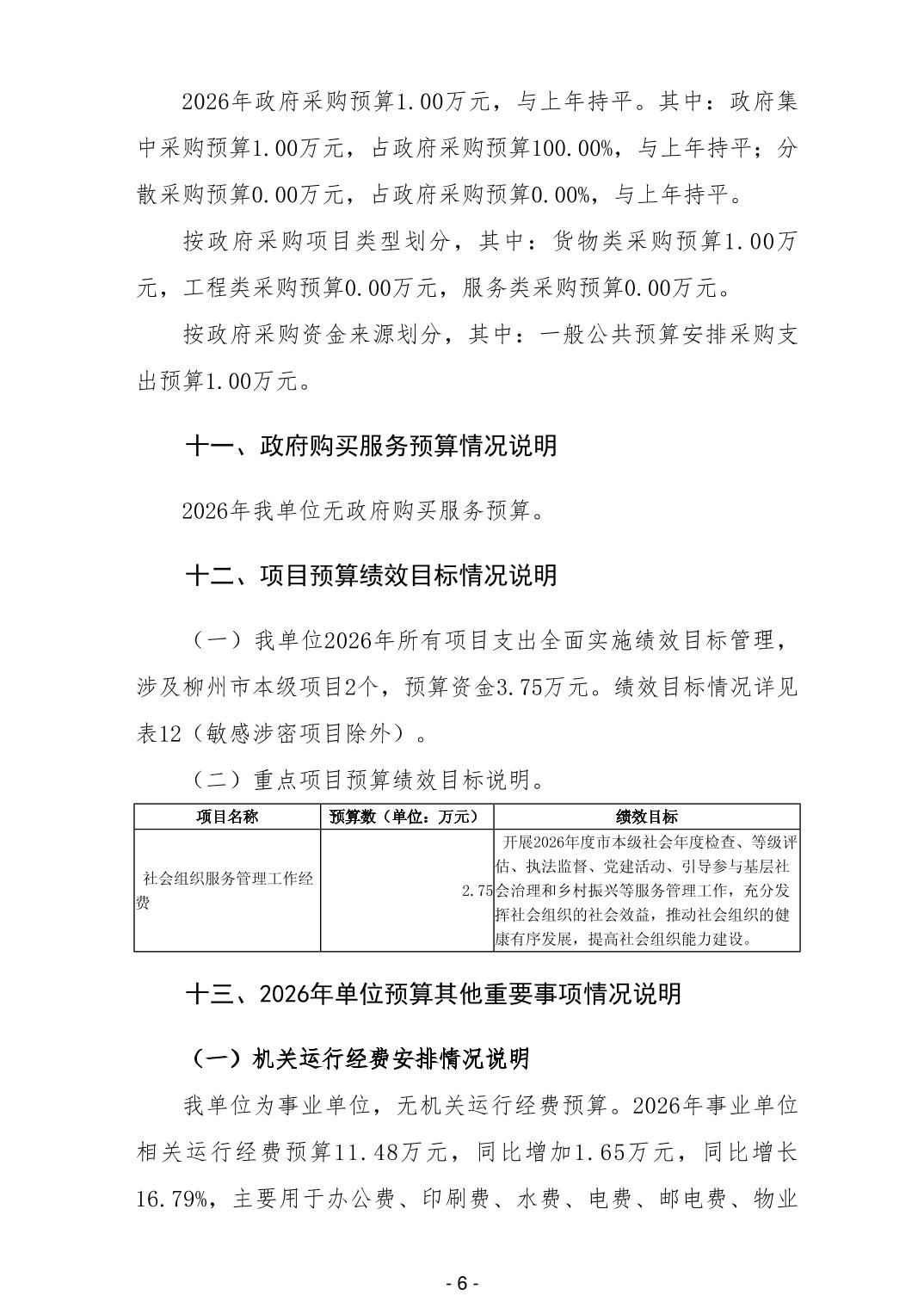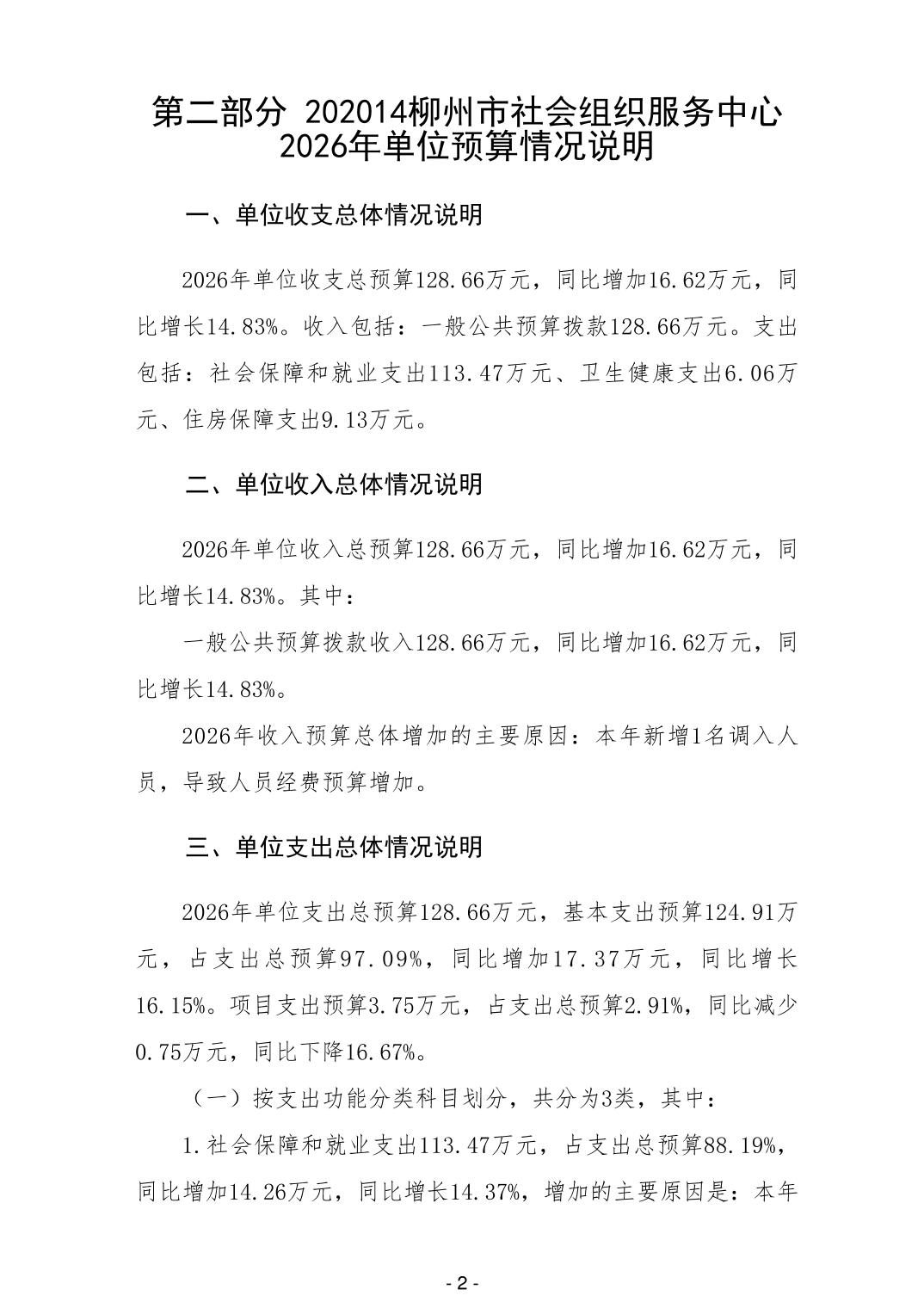 202014柳州市社会组织服务中心2026年单位预算公开说明
