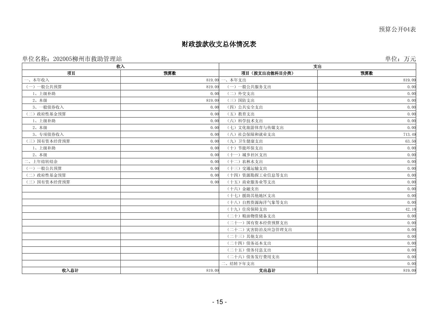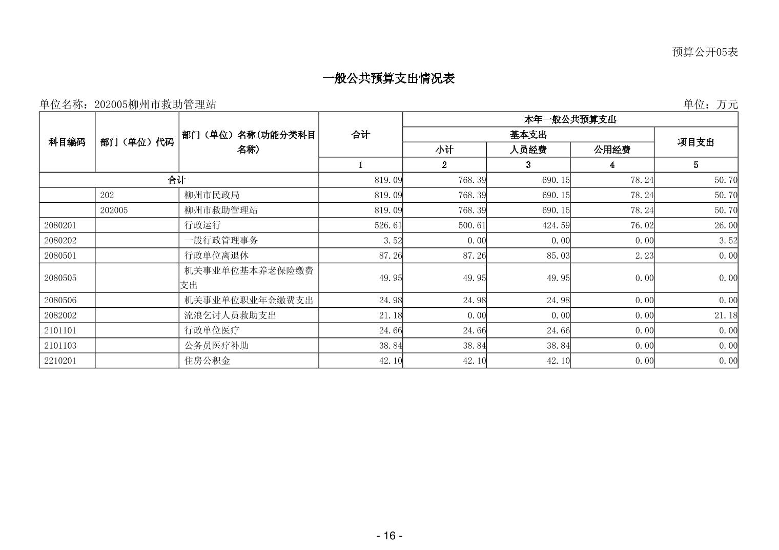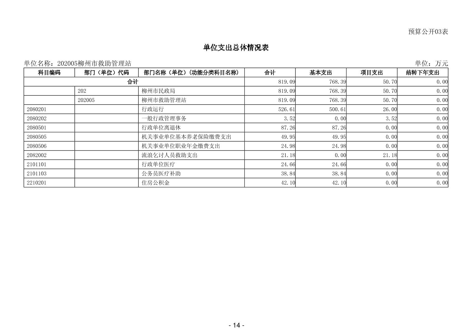 202005柳州市救助管理站2026年单位预算公开说明